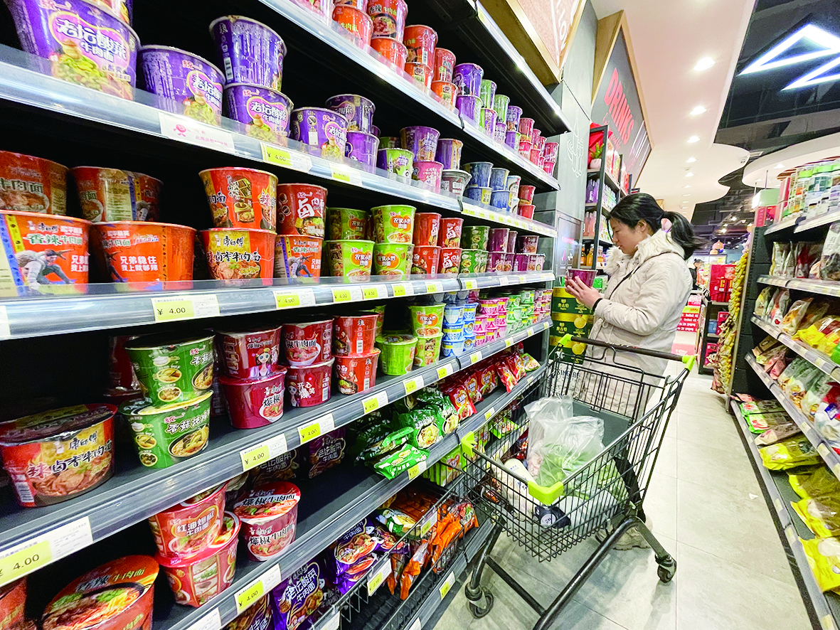 ▲市民在人人家超市选购方便面。株洲晚报融媒体记者/张媛 摄