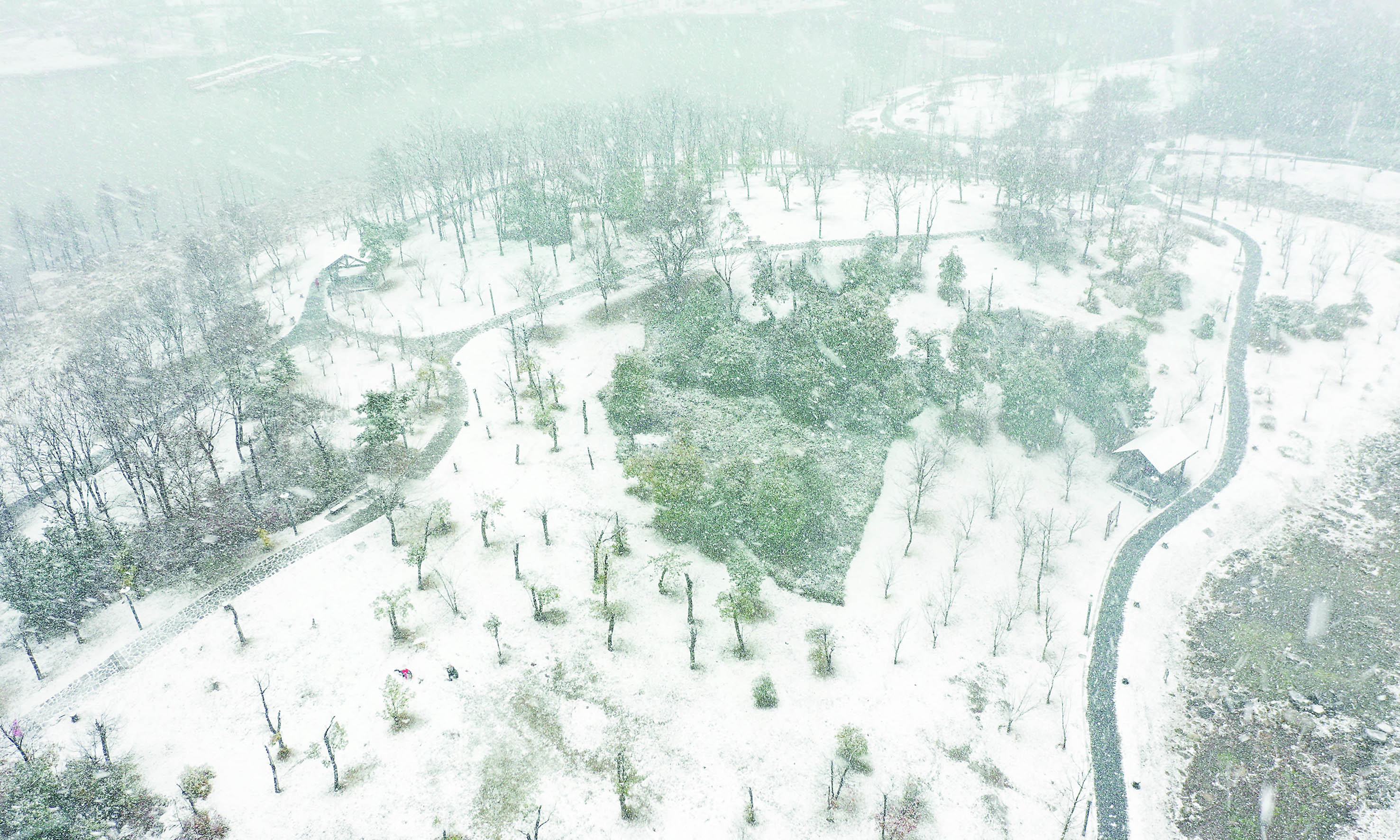 ▲2月22日,雪中的神农城白茫茫一片。株洲晚报融媒体记者/谢慧 摄