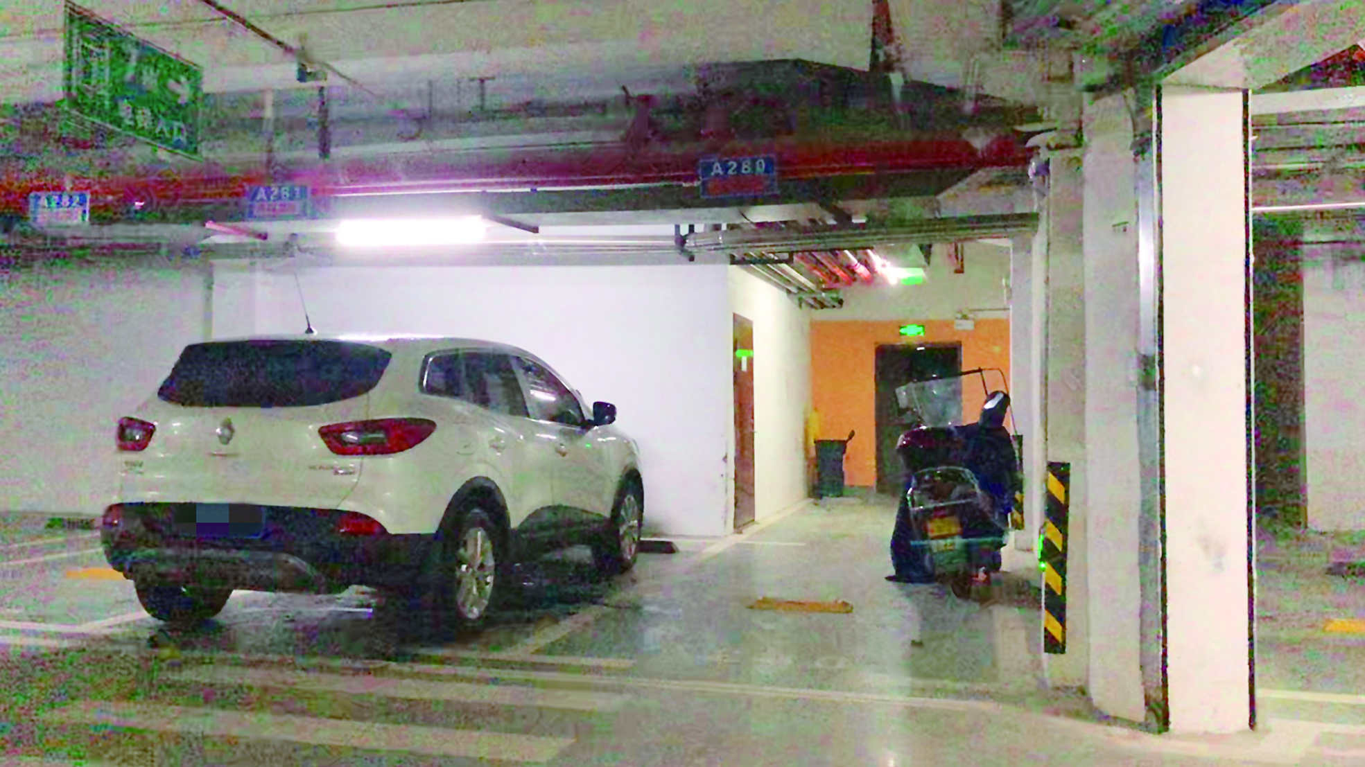 ▲电梯入口已被划成车位出售。