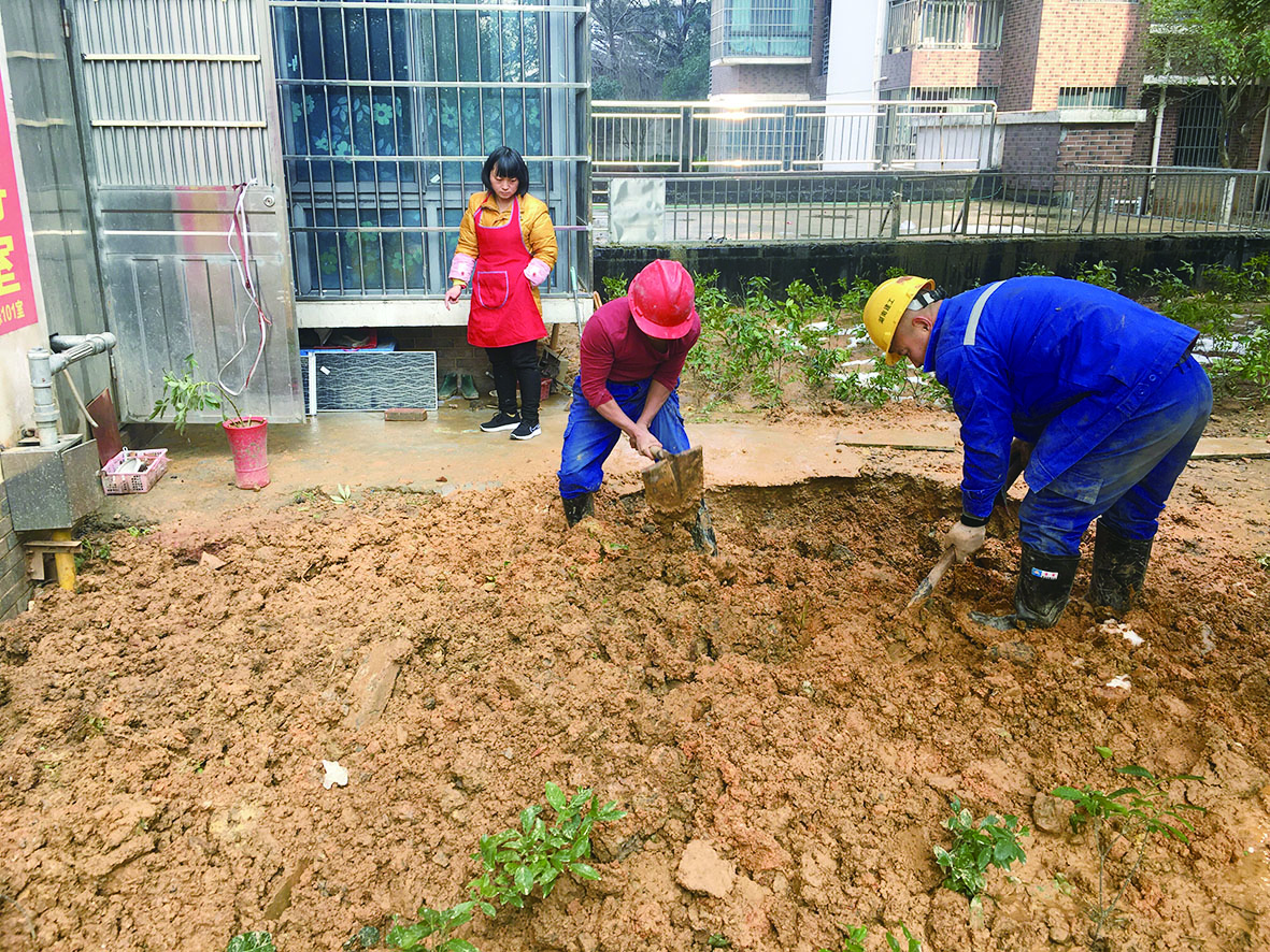 ▲2月24日,抢修人员对破土施工区域进行恢复。记者/刘平 摄