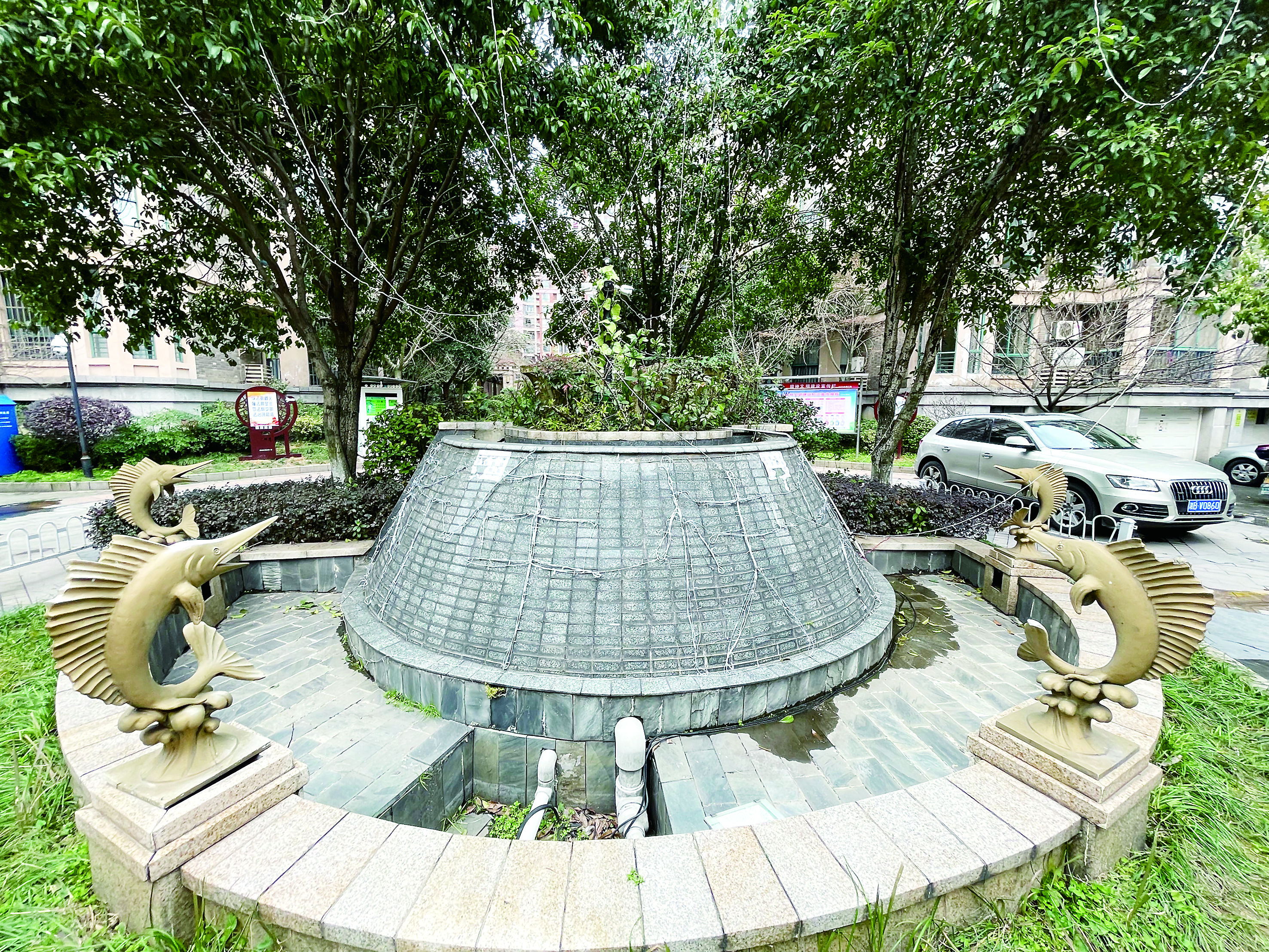 ▶尚格名城二期一喷泉已经干涸。 记者/张媛 摄