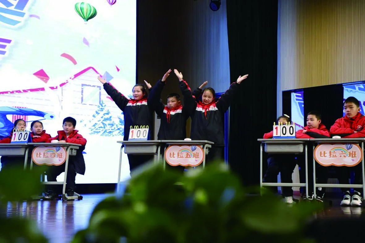 ▲开学典礼的现场,五、六年级各班举行了冬奥知识竞赛。校方供图