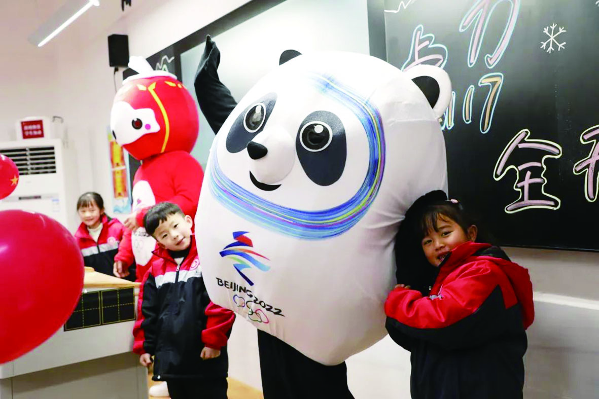 ▲开学第一天,迎接孩子们的冰墩墩和雪容融。校方供图