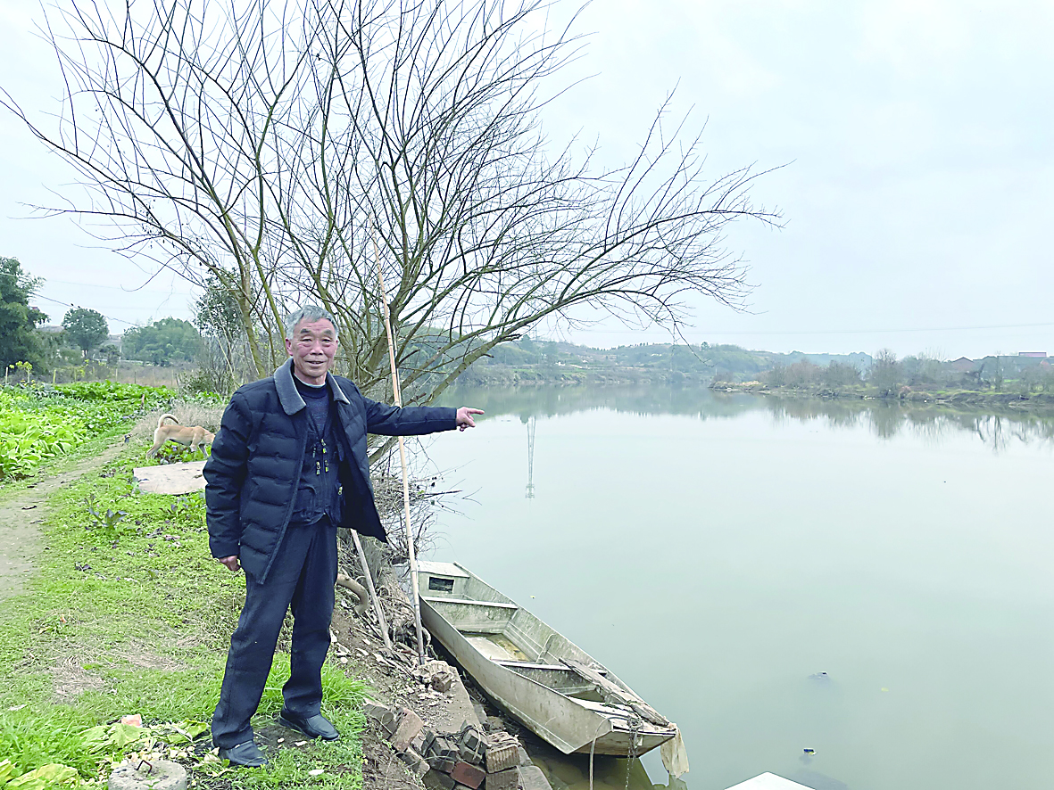 ▲文建平站在家门口的攸水河旁,讲述自己的救人故事。 记者/黎世伟 摄