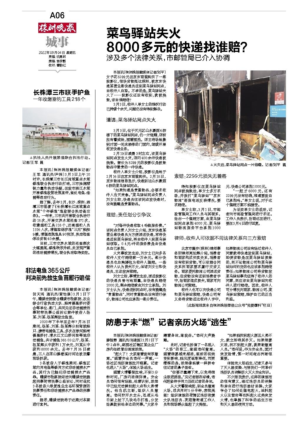 菜鸟驿站失火 8000多元的快递找谁赔?