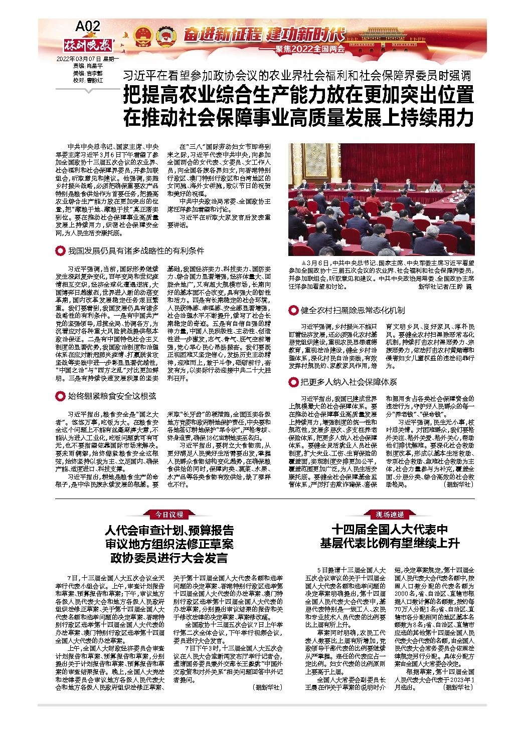 把提高农业综合生产能力放在更加突出位置在推动社会保障事业高质量发展上持续用力