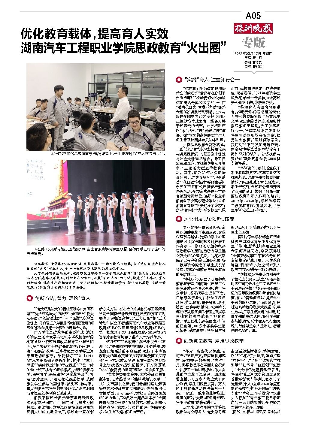 优化教育载体,提高育人实效 湖南汽车工程职业学院思政教育“火出圈”