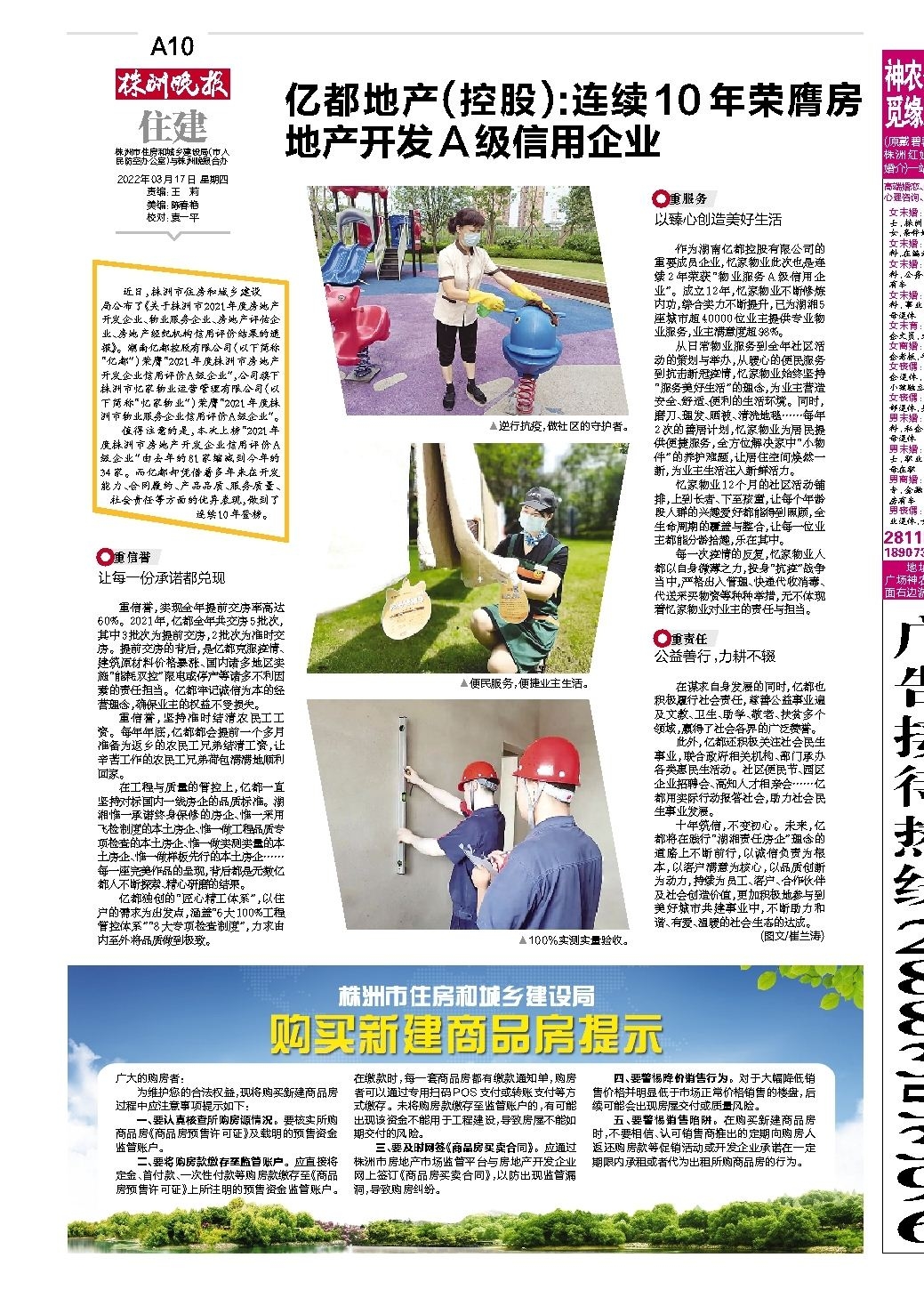 亿都地产(控股):连续10年荣膺房地产开发A级信用企业