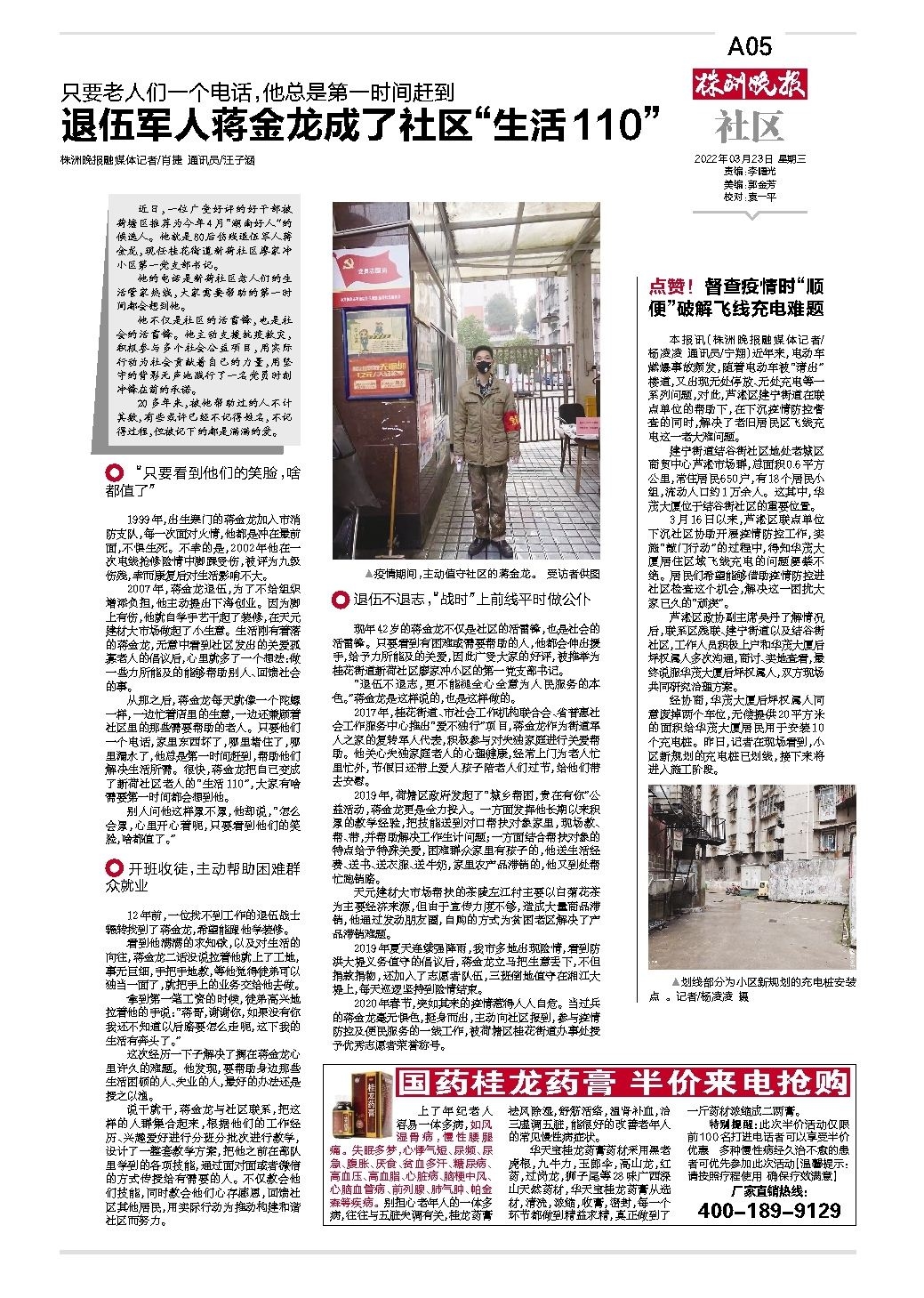 退伍军人蒋金龙成了社区“生活110”