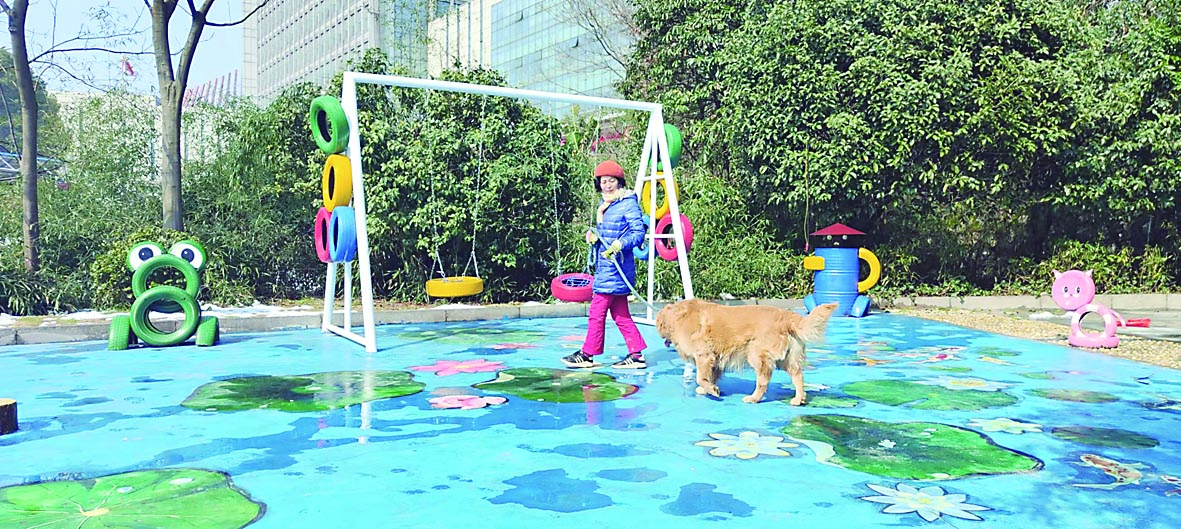 2月27日,暖阳上线。在天元区“低碳新时尚文化广场”,一名市民牵着爱犬在散步休憩。据悉,该广场各个活动区域建设所用的材料基本为矿泉水瓶、油桶、报纸等回收材料,并且会不定期开展各类宣教活动,引导更多市民践行低碳绿色生活。 (株洲晚报融媒体记者/马文章 摄影报道)