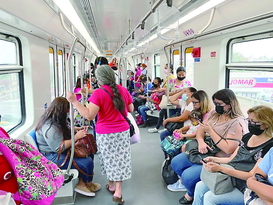 ◀当地居民乘坐蒙特雷轻轨3号线列车出行。 企业供图