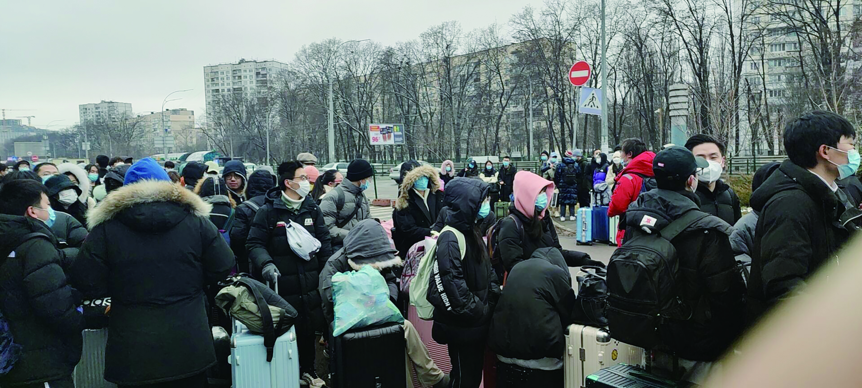 小张同学在乌克兰基辅国立师范学院就读,战乱爆发后,该校避难所共滞留了19名留学生,小张同学非常勇敢,为争取时间,他带领其他5名同学徒步前往基辅火车站。