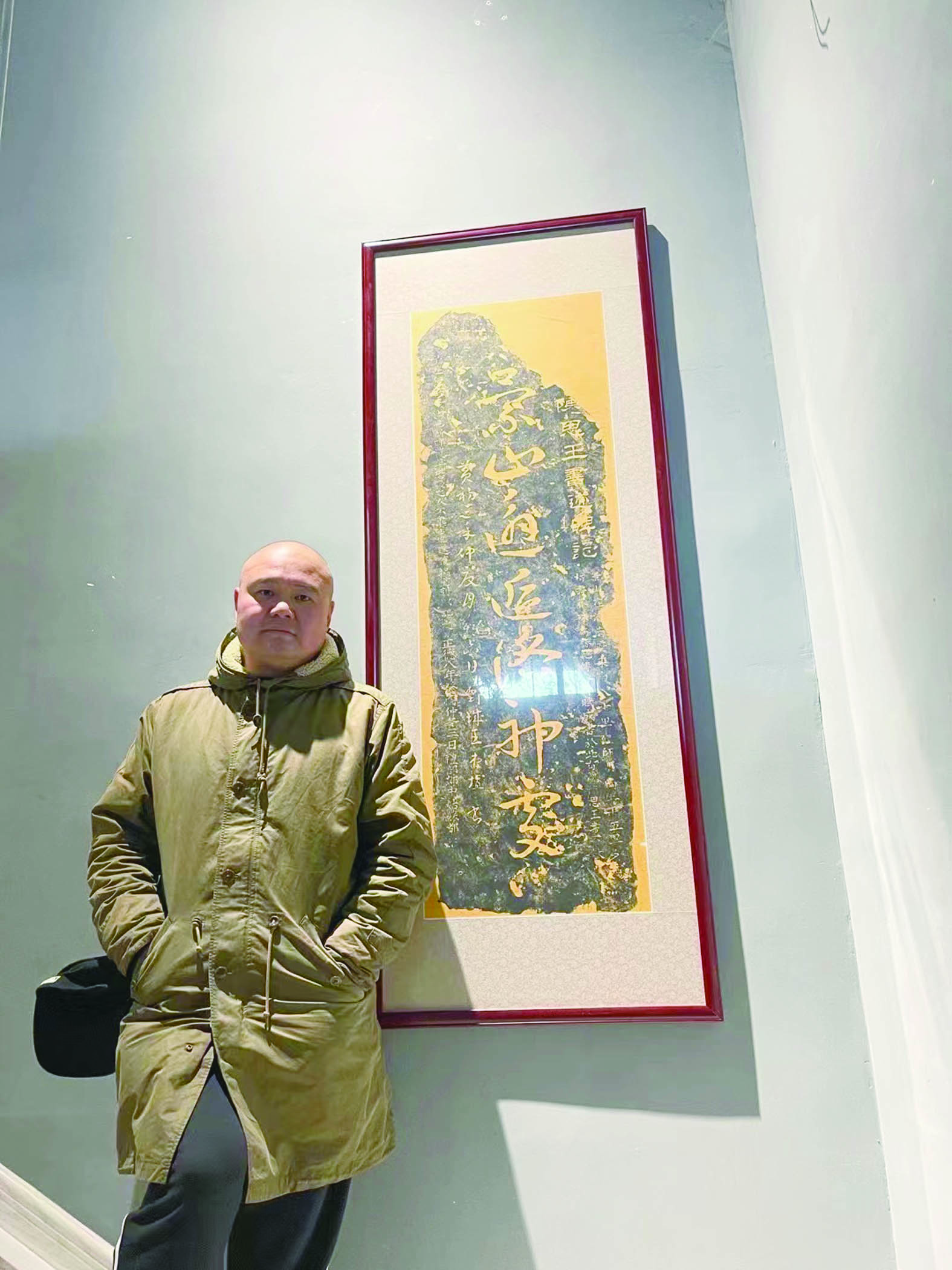 ▲沈勇与碑刻拓片(碑阳)的合影。受访者供图