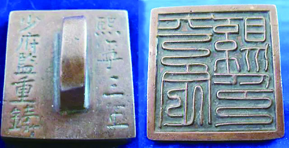 猎人有个熟人姓高,在柳河县任教。高老师知识渊博,喜欢收藏,猎人觉得想搞清楚这个“铜疙瘩”到底值不值钱,只能让高老师看一看。高老师一见此物,便觉得异常古朴,绝非地摊货,尤其是印台表面两列刻有“熙宁三年少府监重铸”九个字,字迹也非新刻,乃是一件古物。“熙宁”是北宋时期宋神宗赵顼的年号,“熙宁三年”也就是公元1070年。而宋代的“少府监”职责为制造门戟、神衣、旌节、祭玉、法物、牌印、朱记、百官拜表法物等事,是正规的官方机构。换言之,这枚印章是一枚宋代官印。