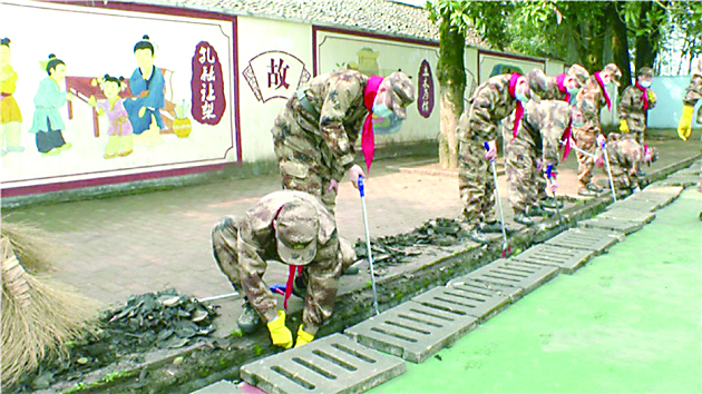 ▲预征青年们开展校园大扫除活动。 通讯员供图