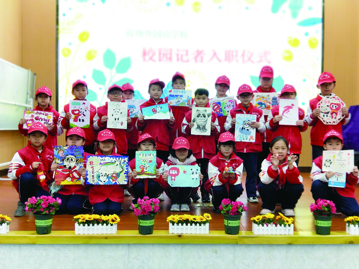 在荷塘区外国语学校,校园记者是闪亮的名片,校园记者的舞台也是学生群体最向往的舞台。策划该校新学期“入职”仪式初始,就有很多学生报名当主持人,“入职”仪式也得到校园记者家长的支持。该校百名校园记者投身创作含冬奥元素作品,冰墩墩、雪容融不断出现在孩子们的手抄报、剪纸、布贴画、素描作品中。当日,部分创作优秀冬奥题材作品的校园记者走上舞台展示自己的作品。