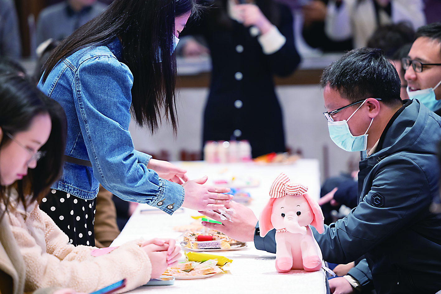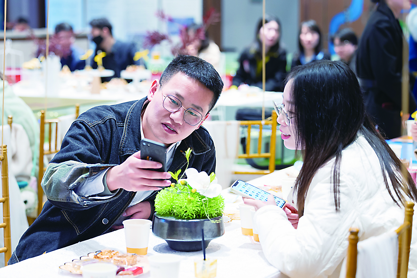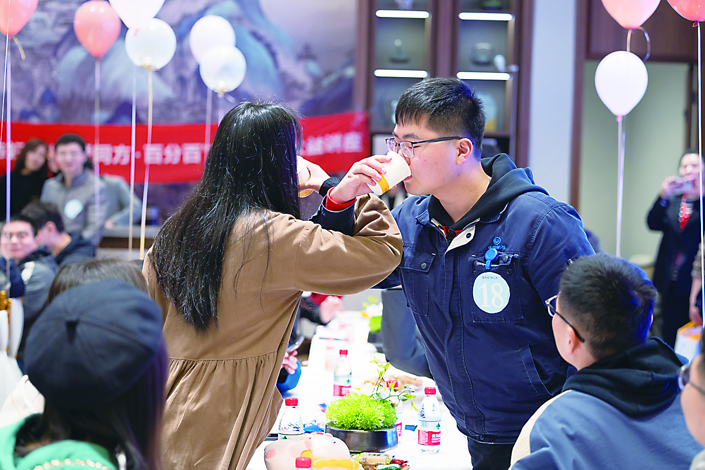 恋爱从朋友开始,朋友从认识起步,游戏开始前是大家自由活动,查看嘉宾资料的环节,很多嘉宾已经默默记下了符合自己理想要求的异性姓名和编号,这让他们在游戏中更容易“有的放矢”。一两轮常规游戏后,最受年轻朋友喜爱的“真心话大冒险”火爆来袭,“中标”的嘉宾任意选择一项惩罚序号,但并不知道具体内容,红娘小姐姐再公布“惩罚”内容:它可能是在现场邀请一名异性,为TA涂抹护手霜;也可能是面对面地为一位异性唱首歌……略带小刺激的“惩罚”,一下子点燃了现场气氛,鼓掌声、尖叫声此起彼伏。几轮接触下来,相互添加微信的嘉宾越来越多,活动尾声时,已经有人开始相约共进晚餐,有人邀约坐顺路车回家……恋爱的小种子已经入土萌发。
