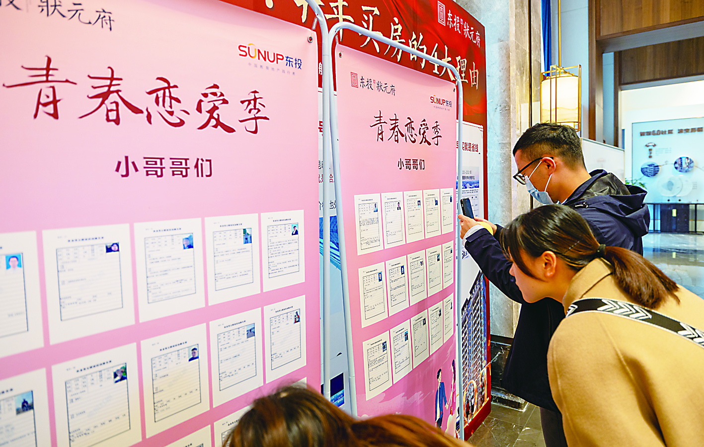 ▲嘉宾们查看资料墙,看有没有心仪的异性朋友。