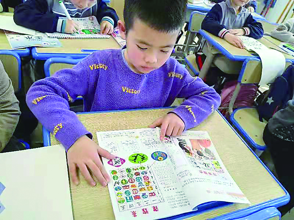 ◀小宇在博雅小学上课。 记者/王晖 摄