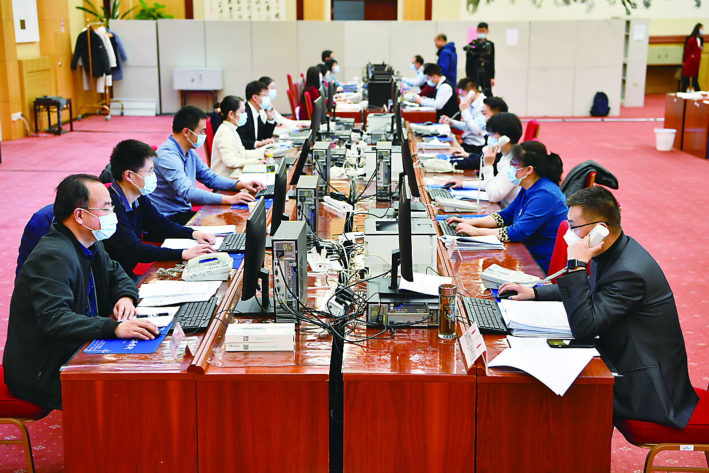 ▲3月9日,十三届全国人大五次会议秘书处议案组建议小组的工作人员在工作,代表建议在这里批分处理后确定承办单位。新华社记者 李鑫 摄