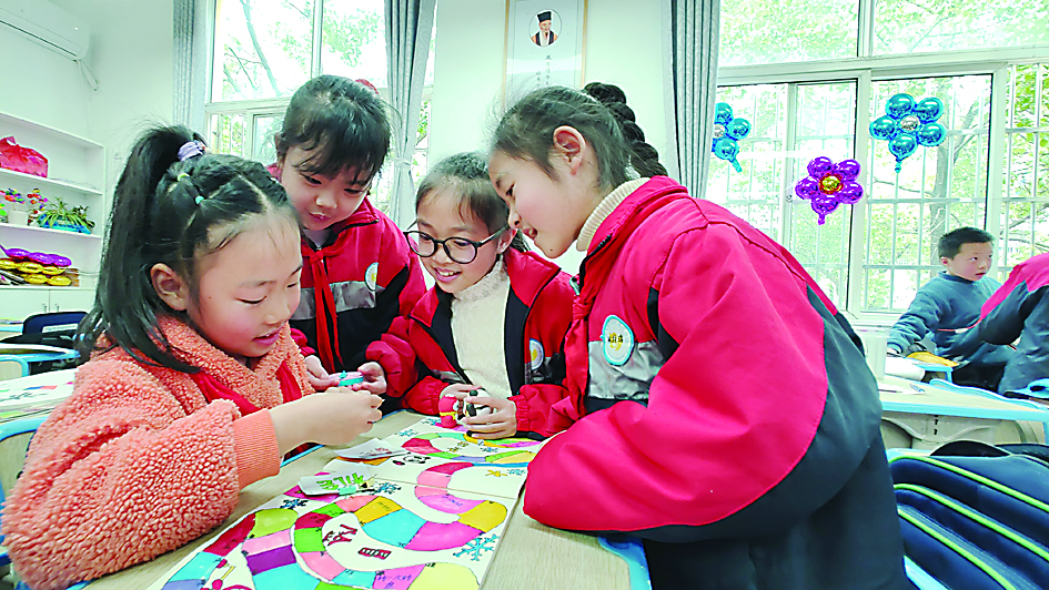 手绘的游戏棋盘、黏土做的棋子、卡纸做的金银铜牌、各种知识卡……3月9日上午,下课铃一响,天元区滨江小学三年级三班的孩子们迫不及待地从课桌里拿出一套五颜六色的棋具玩起来。原来,这是他们结合冬奥知识,自制的一款“墩墩‘棋’遇记”游戏,一经推出便深受同学们喜爱。学生通过掷色子确定走出的步数,当走到某一个项目时便要回答此项运动的相关知识。棋盘上还有两种卡牌——命运卡、机会卡,通过抽取卡牌,完成答题。