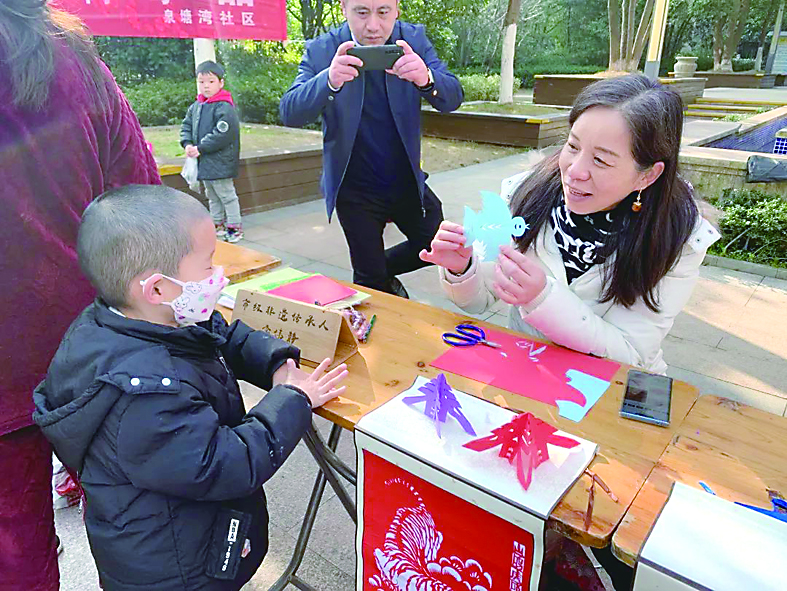 ▲石峰区泉塘湾社区,志愿者剪纸服务吸引了小朋友的好奇目光。 通讯员/谭玉蕾 摄