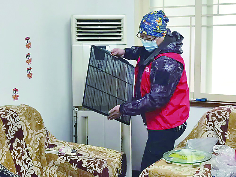 ▲天台社区,志愿者上门为居民免费清洗空调。通讯员/邓咏仪 摄