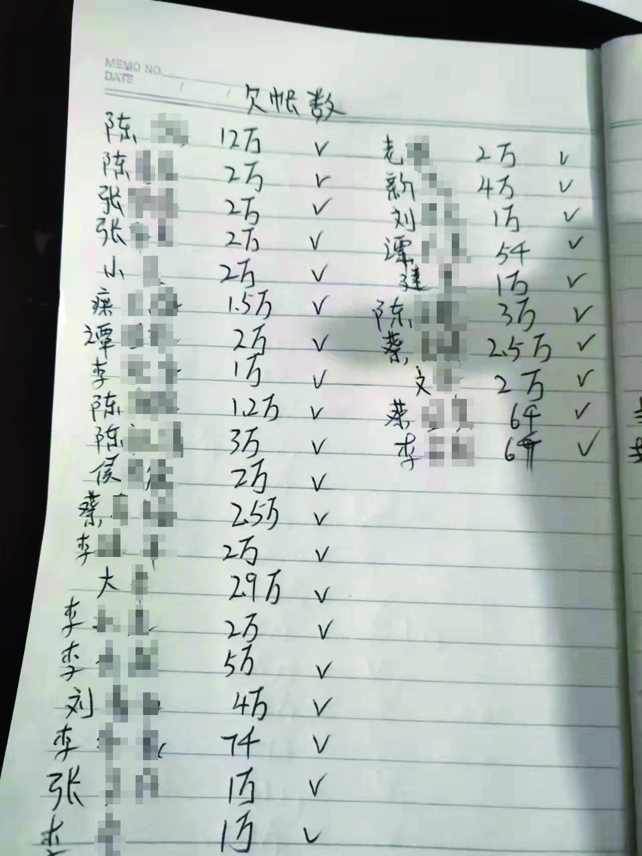 ▲陈海英整理记录的欠账清单。受访者供图