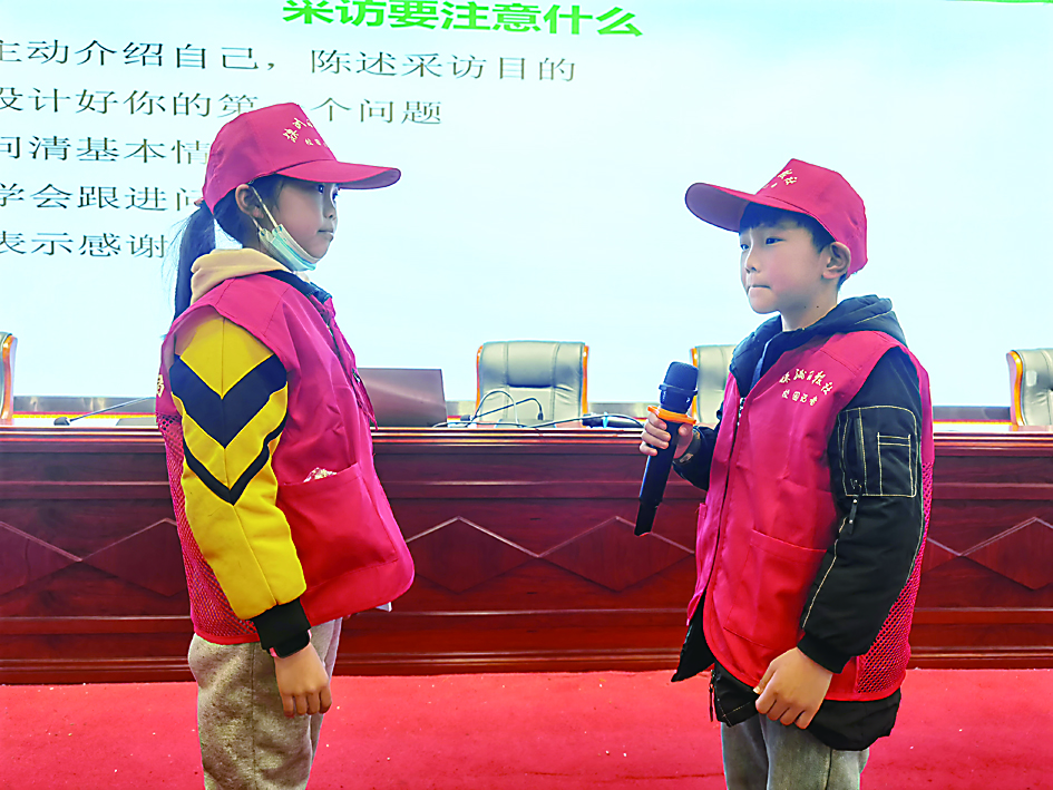 ▲育红小学校园记者模拟采访。 记者/刘文 摄