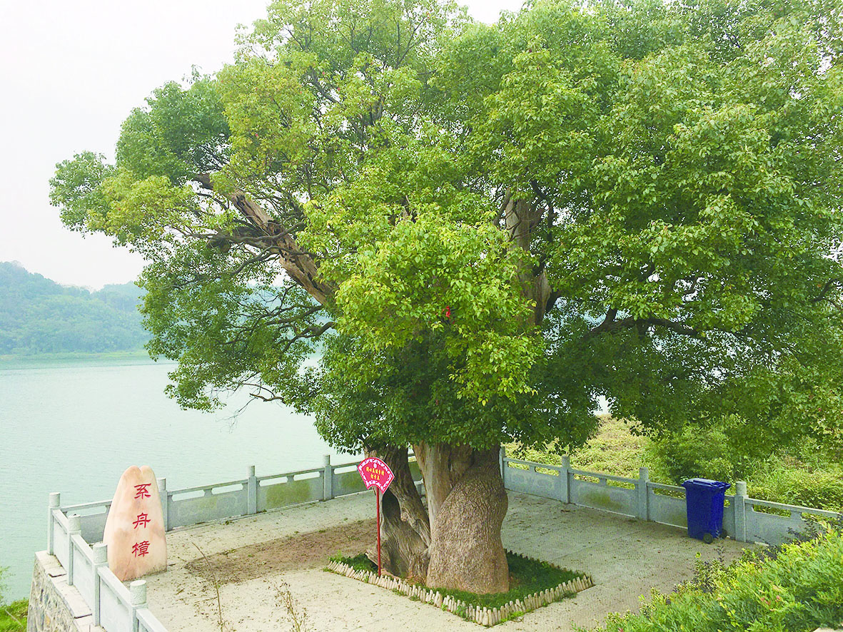 ▲挽洲岛上的“系舟樟”。记者/刘平 摄
