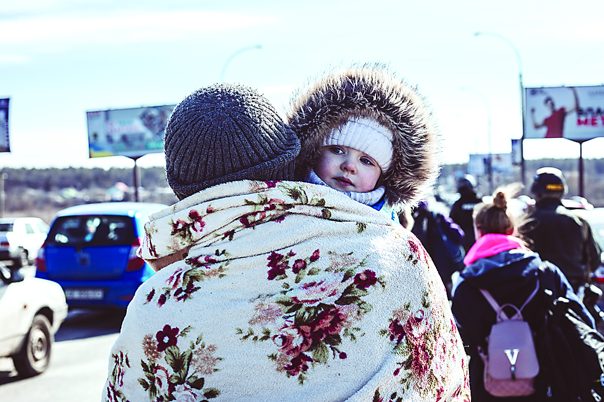 ▲3月11日,人们在乌克兰基辅州伊尔平通过人道主义通道撤离。 新华社发