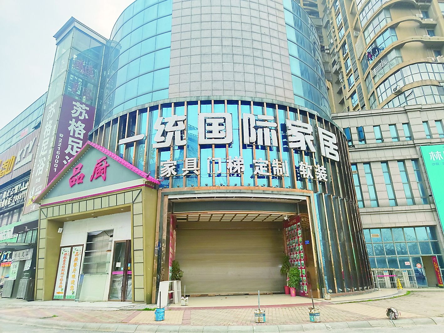 ▲两个月来,一统国际家居店大门紧闭,员工解散,留下一群无助的消费者。 株洲晚报融媒体记者/成姣兰 摄