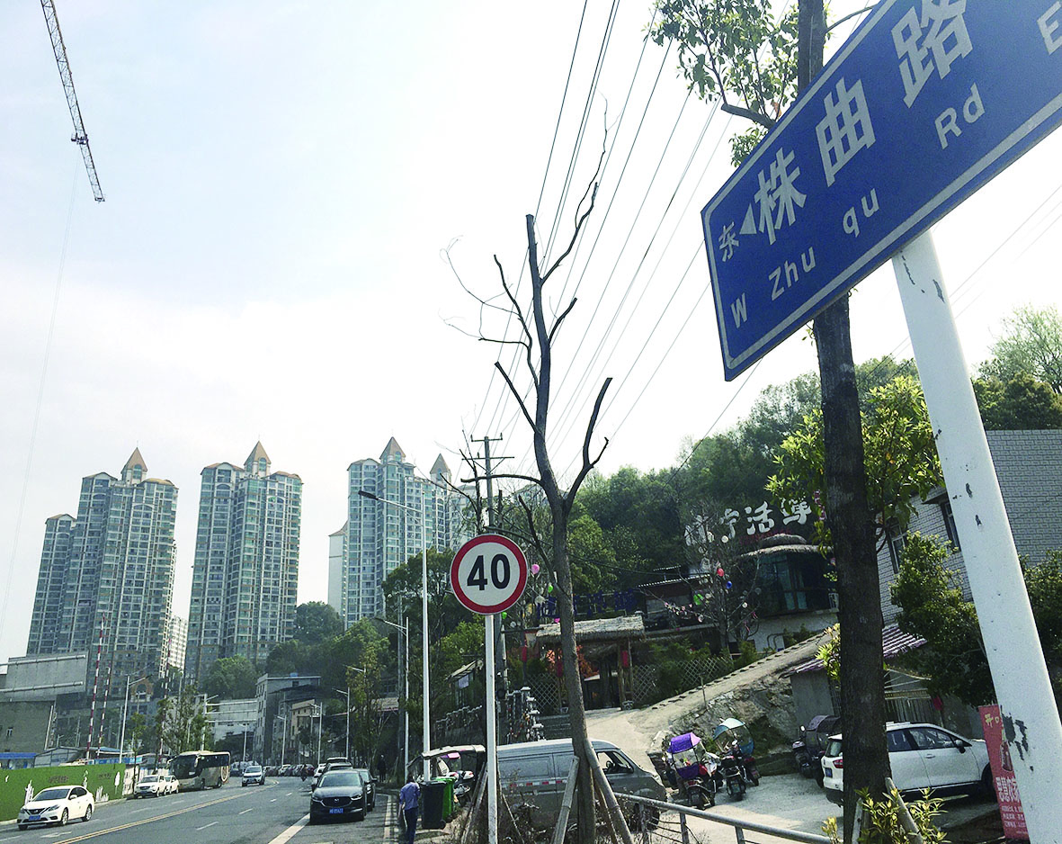 ▲盛世路边出现“株曲路”路牌。记者/刘平 摄