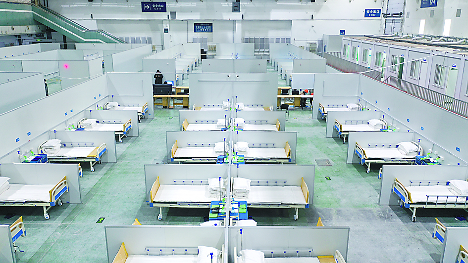 ▲截至3月15日9时,吉林省现存全员核酸检测筛查出的初筛阳性待临床诊断人员1427例,已全面落实管控措施。全省已完成5家方舱医院建设。这是3月15日拍摄的长春国际会展中心方舱医院内景。 据新华社
