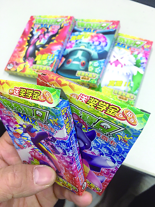 16日下午,记者在芦淞区樟树坪小学校门前一家商店,以为小孩购买卡片玩具为由买到5盒“神奇卡”,共花费5元。
