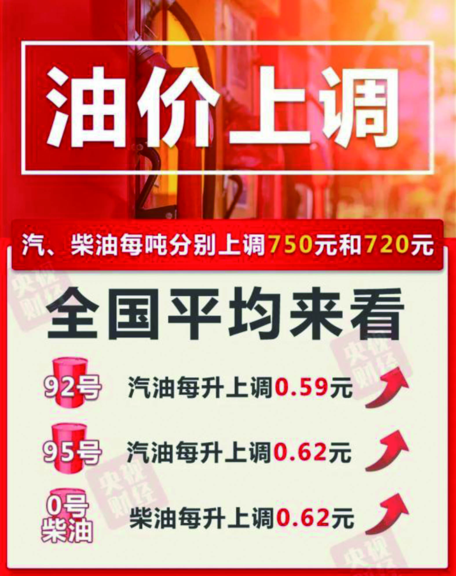 据国家发展改革委有关负责人介绍,国内成品油价格每10个工作日调整一次,每次价格如何调整主要看调价前10个工作日国际油价平均值与再之前10个工作日平均值的比较情况,不是简单由调价前几天国际油价变动决定。3月3日上一轮调价后,国际油价大幅跳涨,近日虽然有所回落,但综合计算,近10个工作日平均值仍较大幅度高于上期水平。