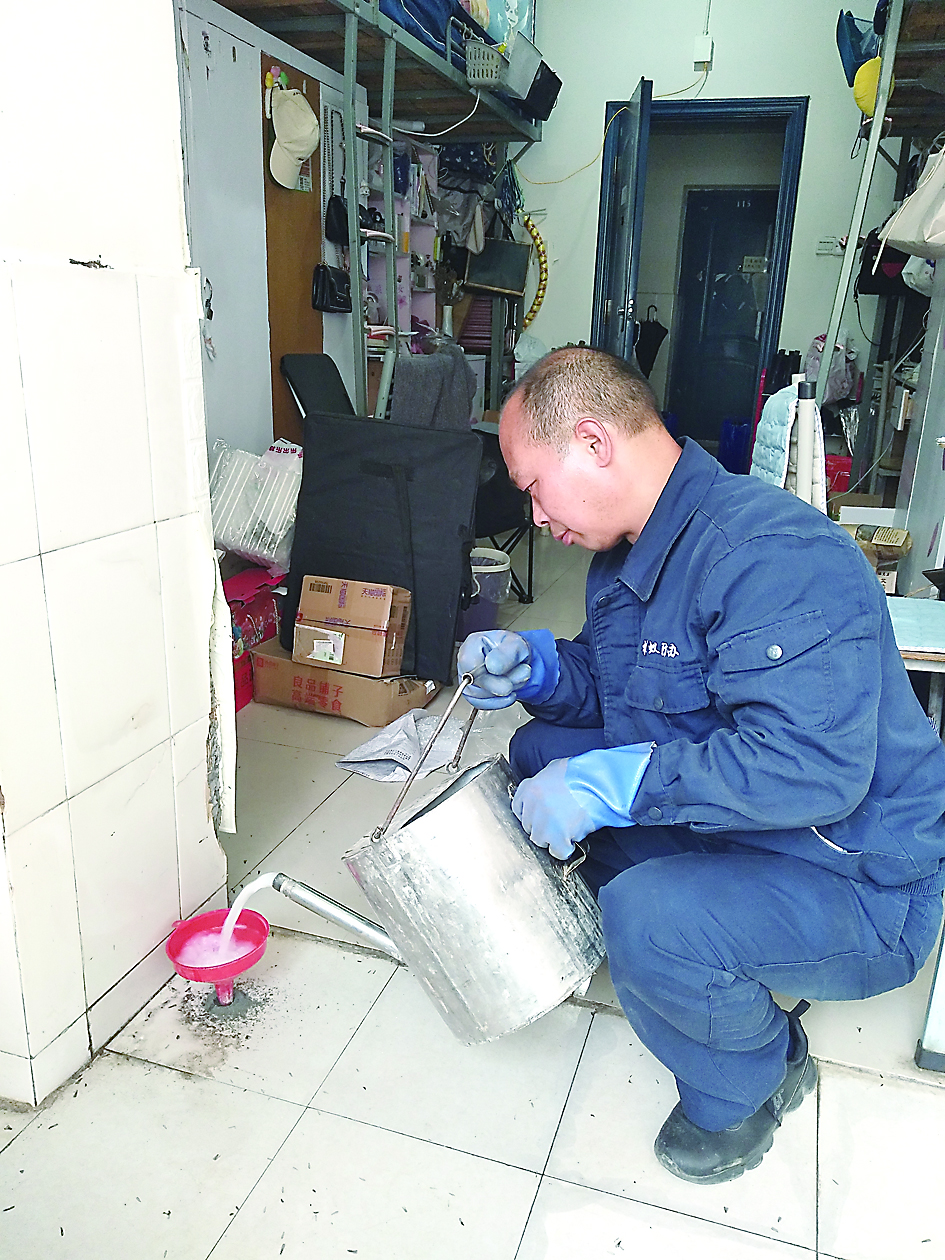 “我这里发现好多白蚁,要怎么处理?”3月14日,记者跟随白蚁防治技术人员来到天元区湖南工业大学,技术人员在多个寝室都发现了白蚁,随后进行专业灭杀处置。