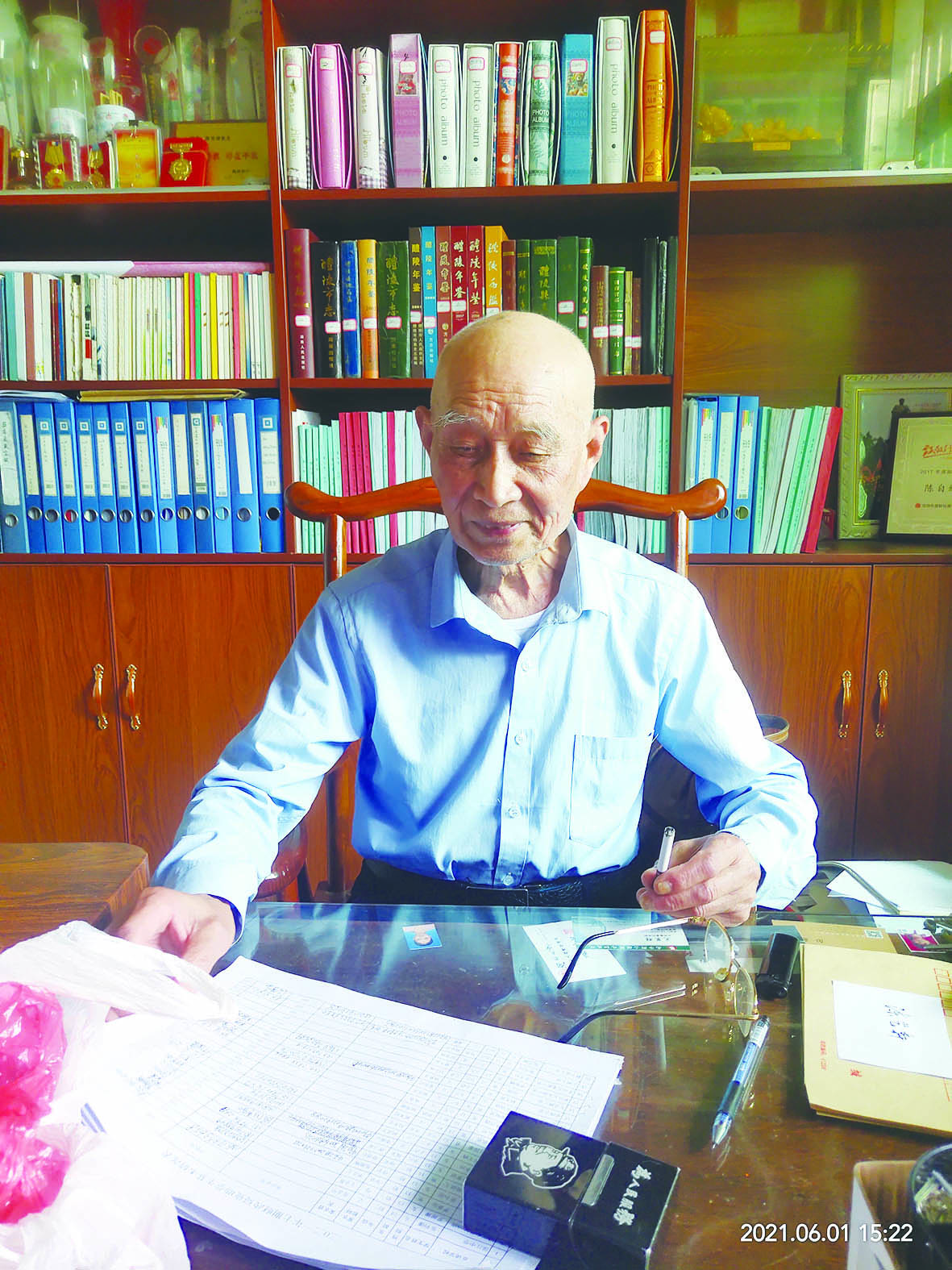 ▲87岁的陈自绪,依然在助学的道路上前行着。通讯员供图
