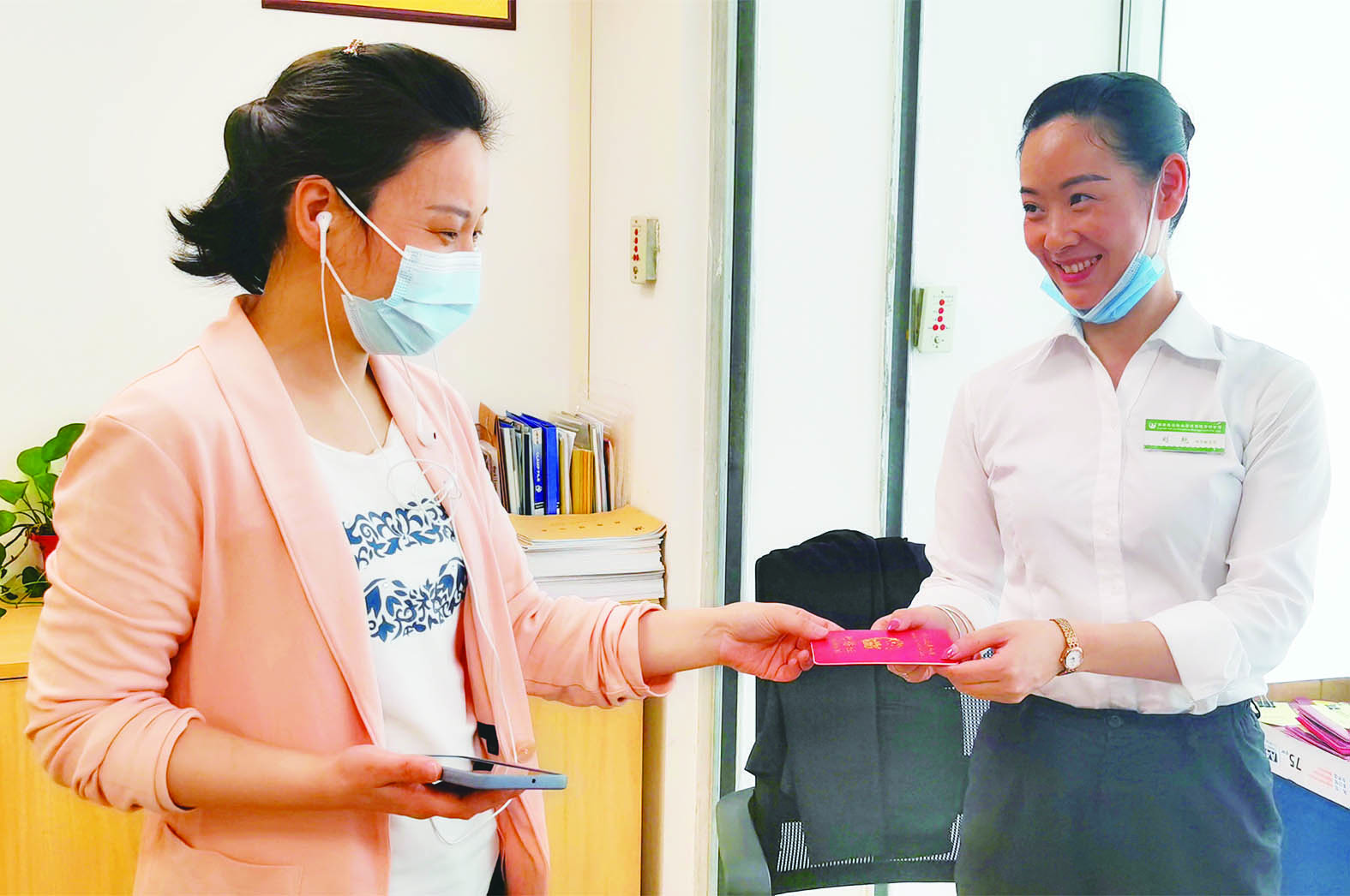 ▲办事群众上门领取遗失的证件。 受访单位供图