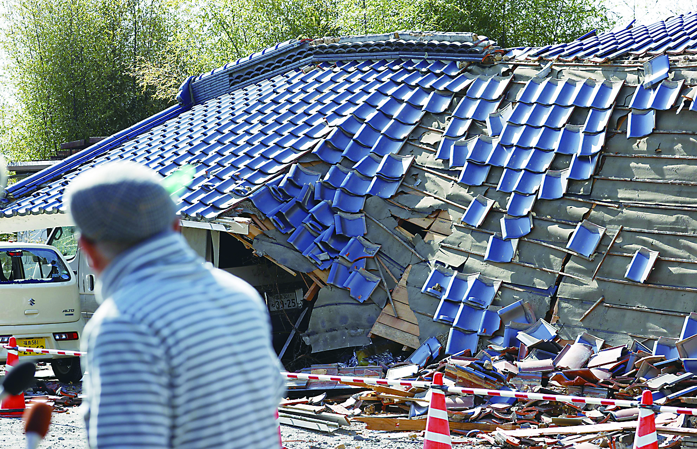 ▲17日在日本福岛县国见町拍摄的倒塌的房屋。 新华社/共同社
