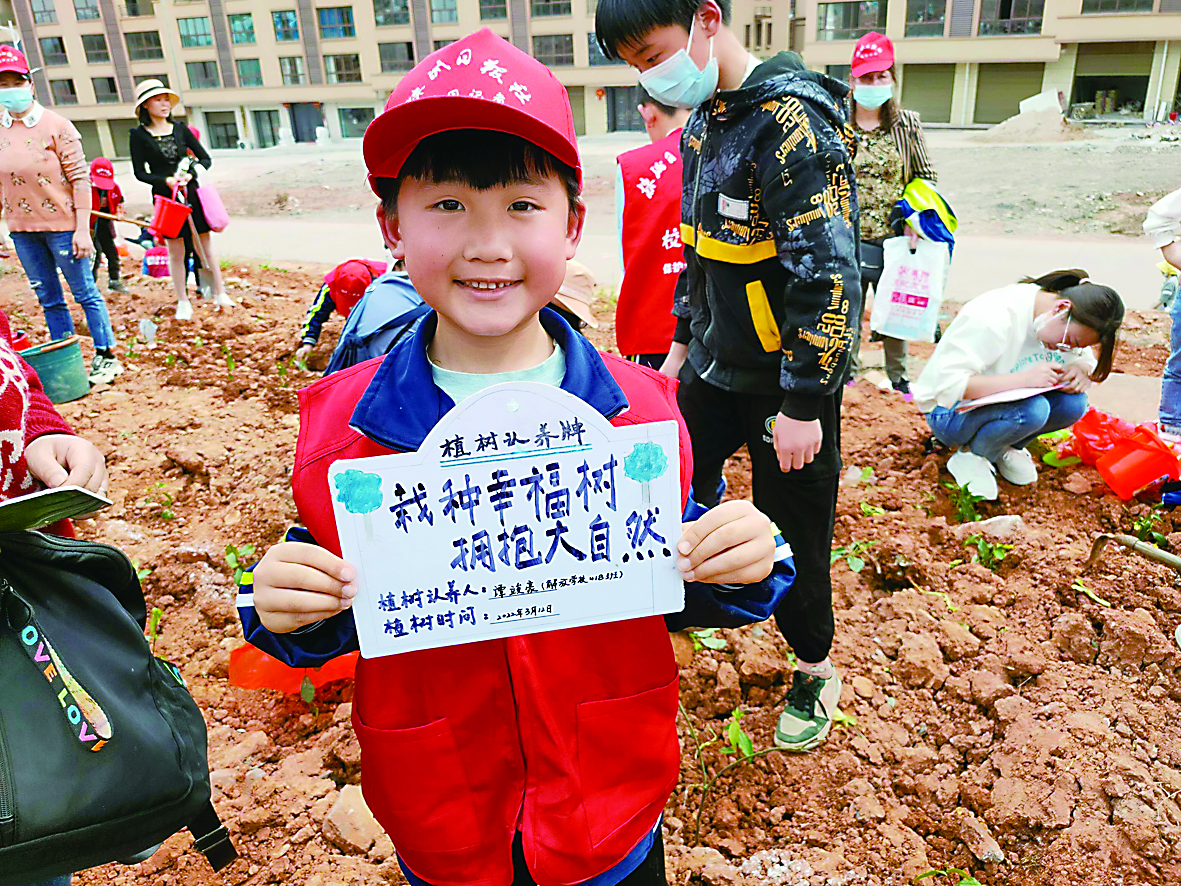 本报讯 (株洲晚报融媒体通讯员/吴青)3月12日,茶陵县解放学校校园记者开展以“爱我茶陵 我在‘茶祖’栽茶树”为主题的的植树节爱树、护树活动。