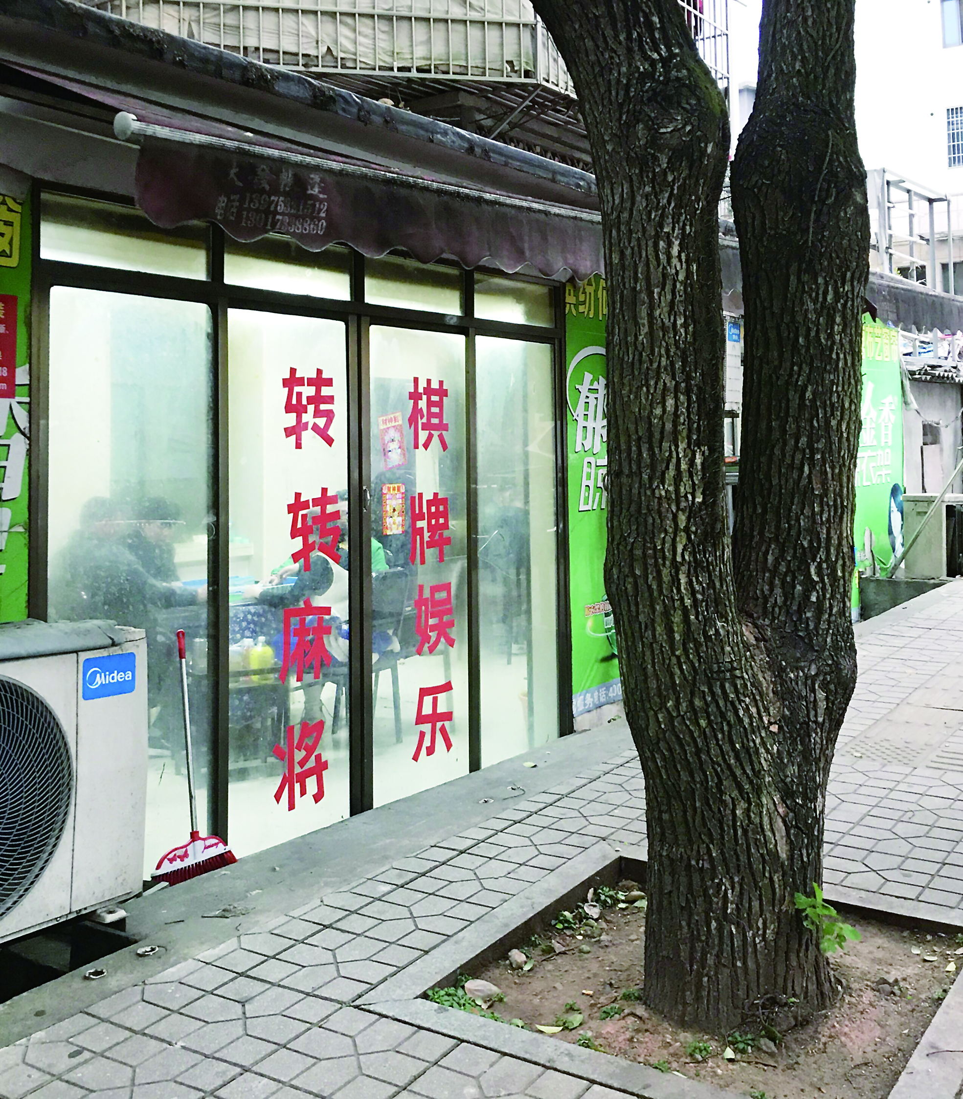 ▶荷塘星城二路,一家无名麻将馆照常营业。记者/刘平 摄