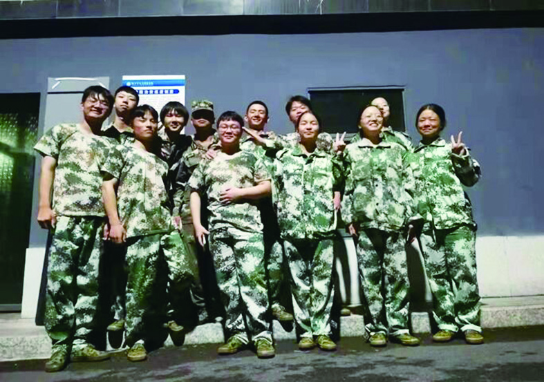 ▲吕荣辉(后排右2)与同学们在军训中。通讯员/供图
