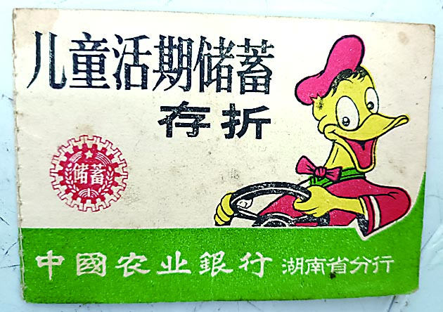 “这本儿童存折就是我用自己的字画换来的。”老吴拿出一本由中国农业银行湖南省分行发放的儿童存折,存折户主是一位“80后”,上面印着的图案,是当年风靡大江南北的“爆款”动画片《米老鼠和唐老鸭》里的主角唐老鸭。