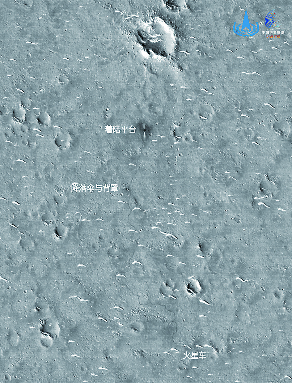 ◀高分辨率相机拍摄“祝融号”巡视区影像。(图片来源:国家航天局)