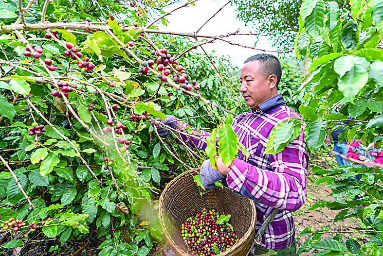 ▲2月23日,云南普洱市思茅区南屏镇大开河村的村民在采摘咖啡果。新华社记者/陈欣波 摄