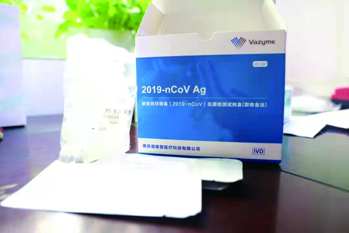 ▲由南京诺唯赞公司生产的新冠抗原检测产品。通讯员供图