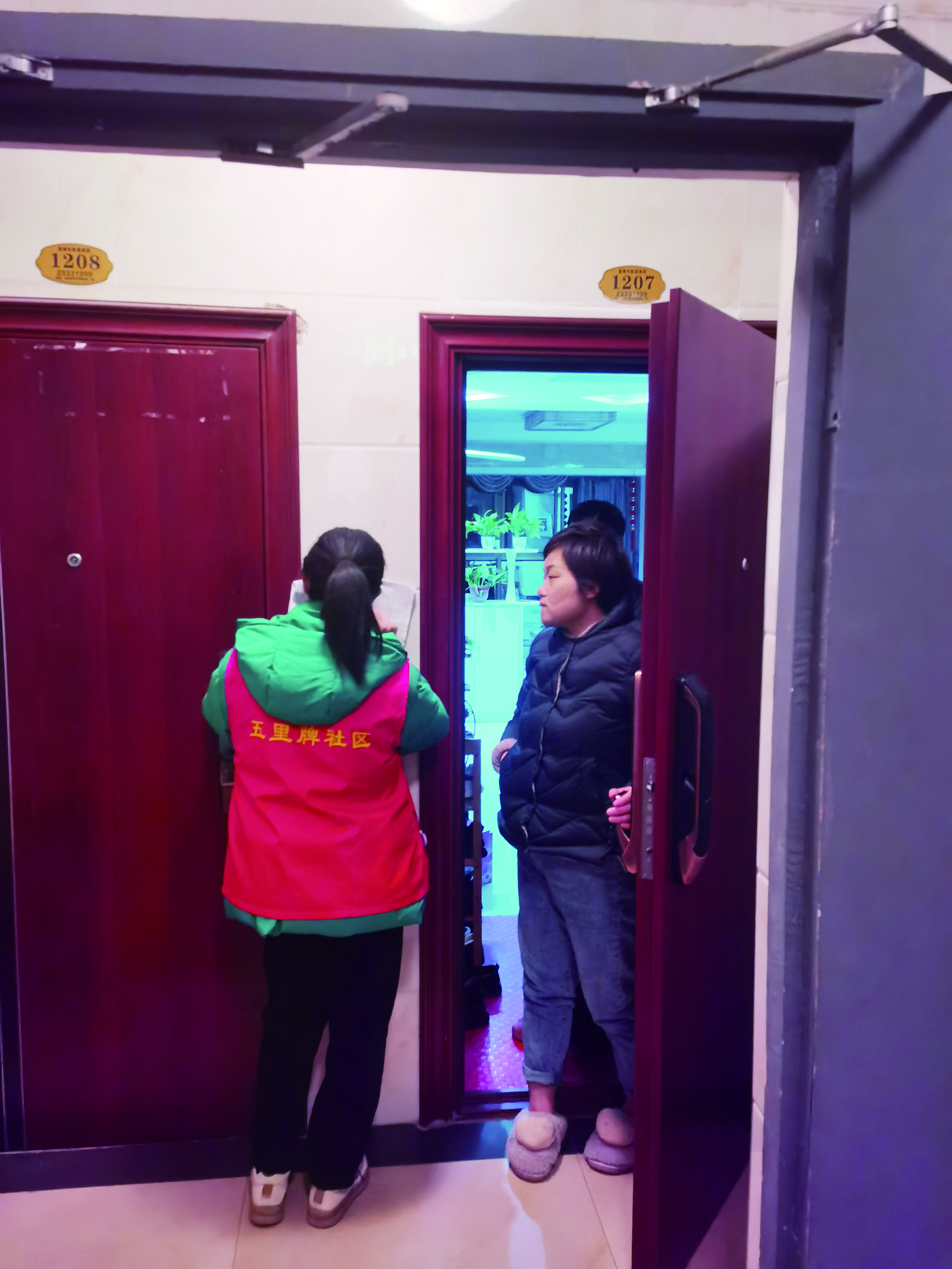 ▲网格员陈雅平(左)上门摸排信息。受访者供图
