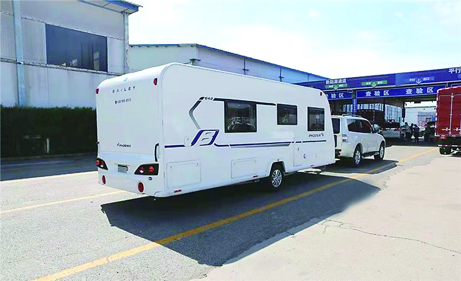 ◀一辆家用汽车带着拖挂式房车。 (网络供图)