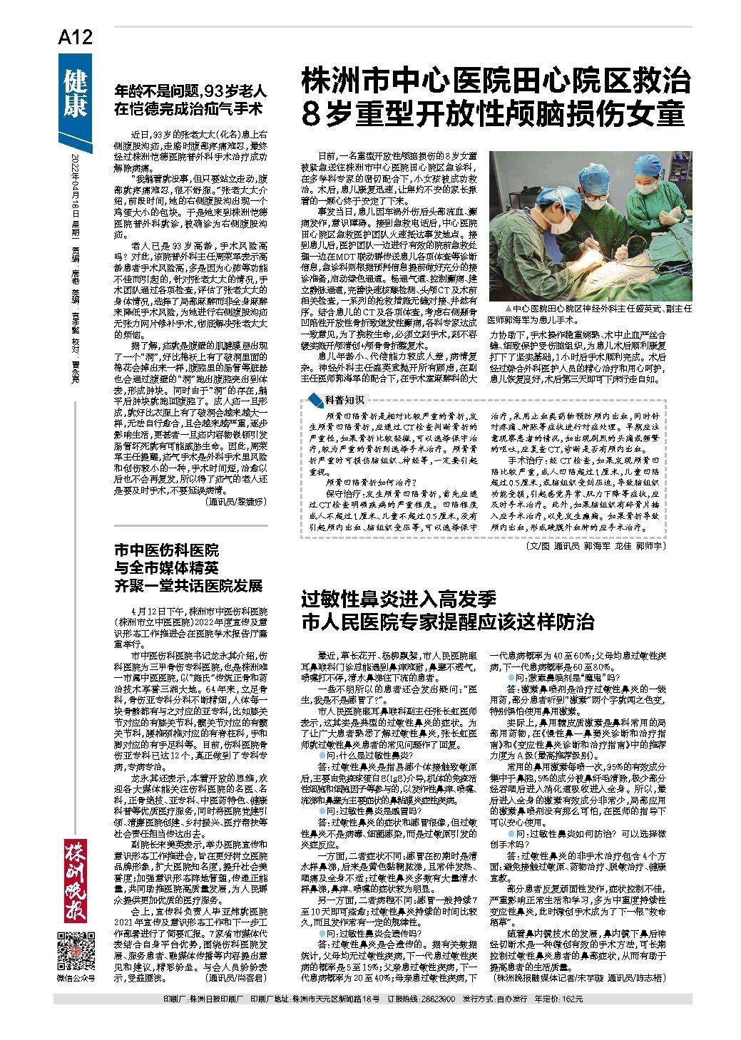 株洲市中心医院田心院区救治 8岁重型开放性颅脑损伤女童